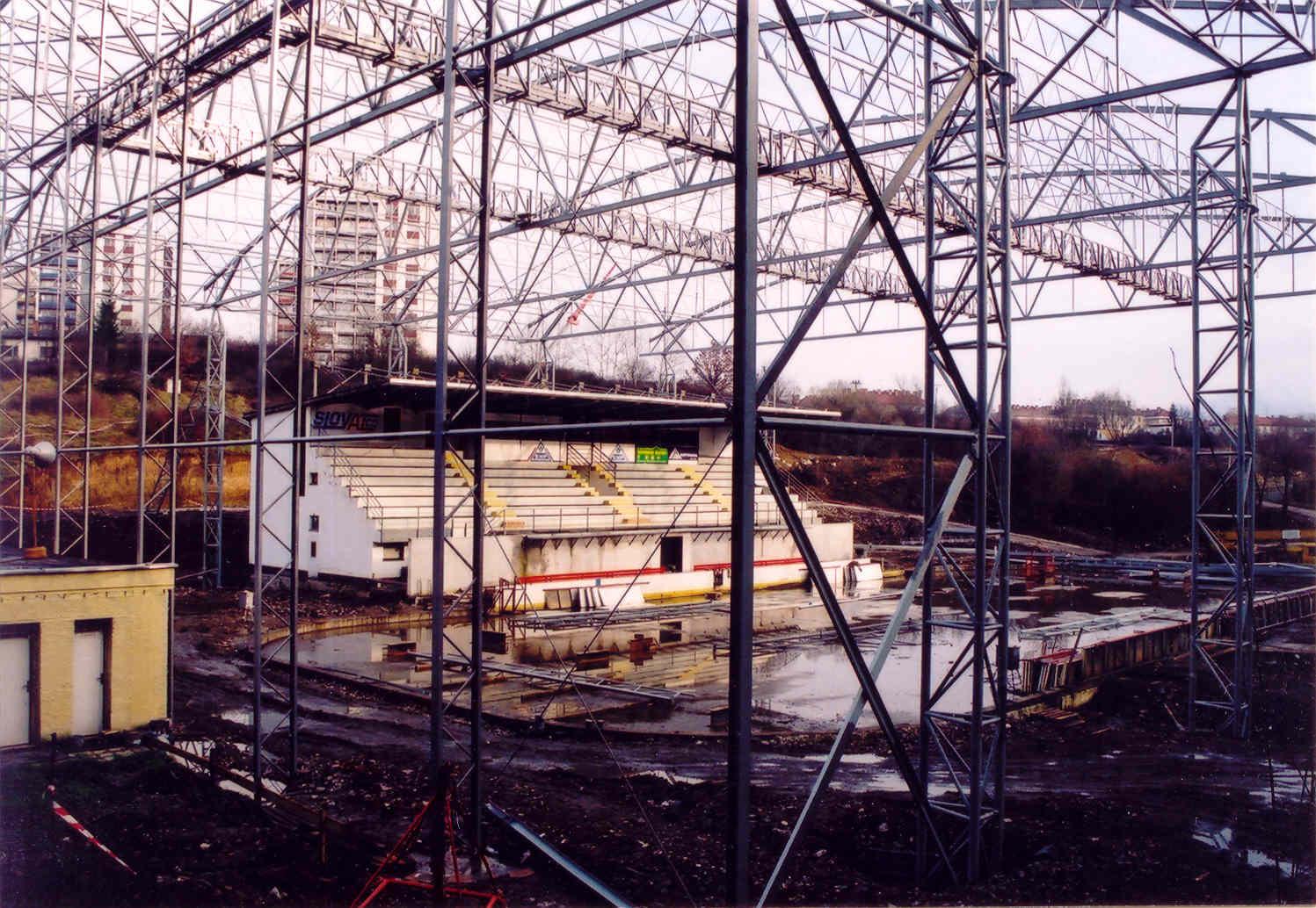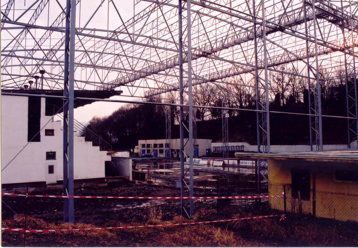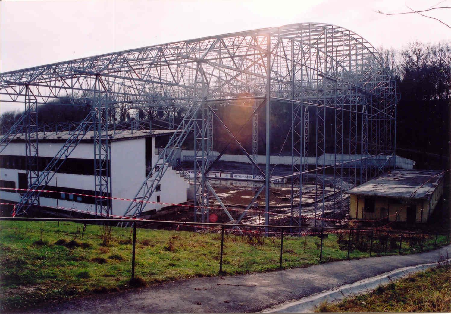V roku 2002 bola podpísaná zmluva o združení prostriedkov firmami SLOVALCO a. s. Žiar nad Hronom, ZSNP a.s. Žiar nad Hronom a Mestom Žiar nad Hronom a začala sa výstavba zastrešenia zimného štadióna. Ten po dlhých rokoch začal konečne nadobúdať novú podobu, veď na úrovni stredoslovenského regiónu boli postavené zimné štadióny aj tam, kde nemali ani umelú ľadovú plochu viď. Prievidza, Detva, Rimavská Sobota, Zlaté Moravce a celá rada ďalších zakrytých umelých plôch, iba žiarsky ZŠ zostával v tej istej podobe. Hokejový klub pôsobil pod Telovýchovnou jednotou. Potom ako samostatný HKM Žiar nad Hronom. Neskôr patril do Slovšportu, potom Satelitšportu a ešte v sezóne 2002/2003 do s. r. o. ŠK ZSNP Žiar nad Hronom. Od 1.7.2003 hokejový klub zastrešoval Mestský športový klub Žiar nad Hronom.
